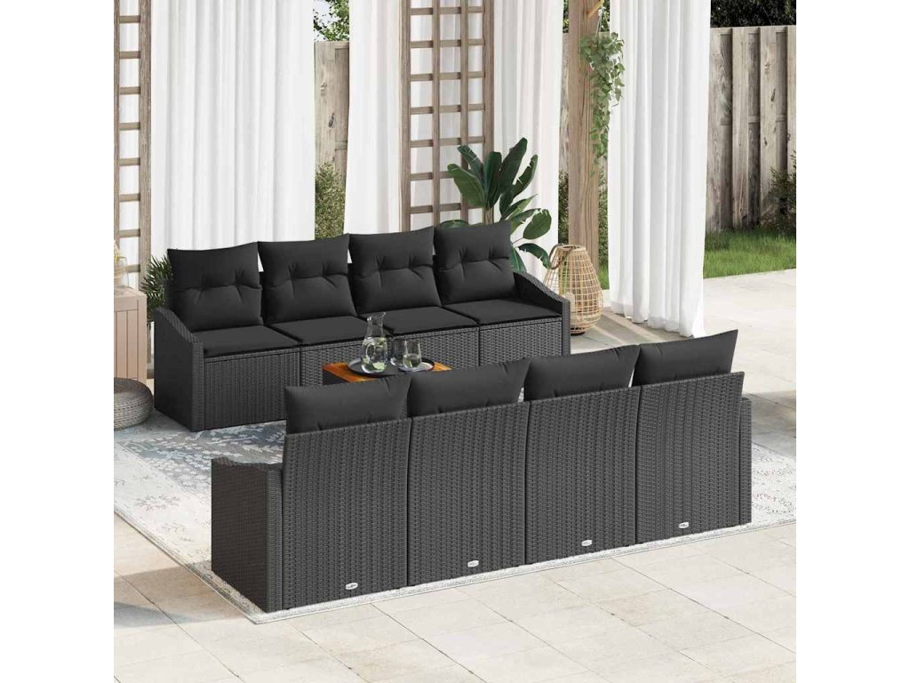 Sada zahradních pohovek s polštářem 9 pcs Černá polyratan 3347807
