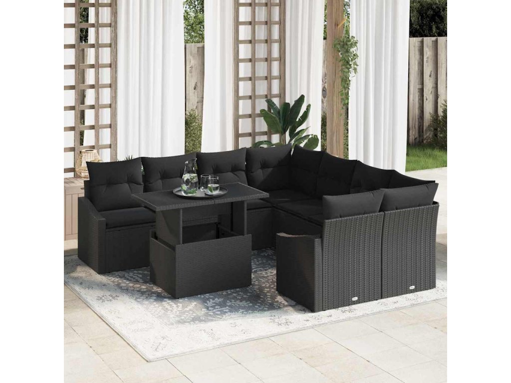 Sada zahradních pohovek s polštářem 9 pcs Černá polyratan 3348979