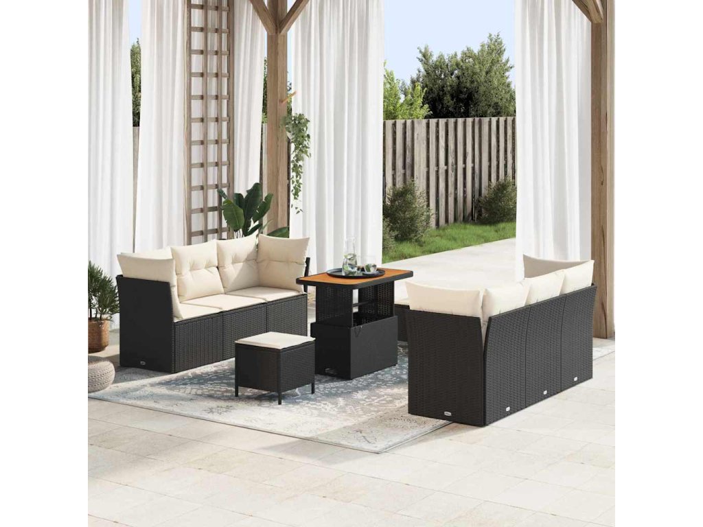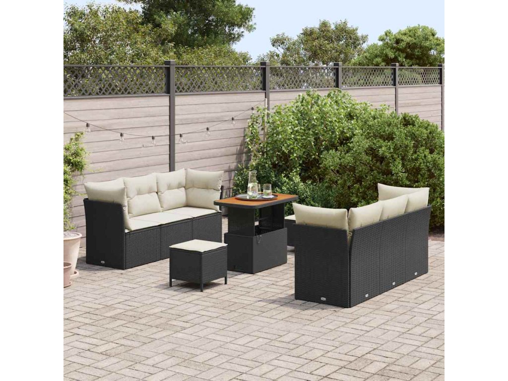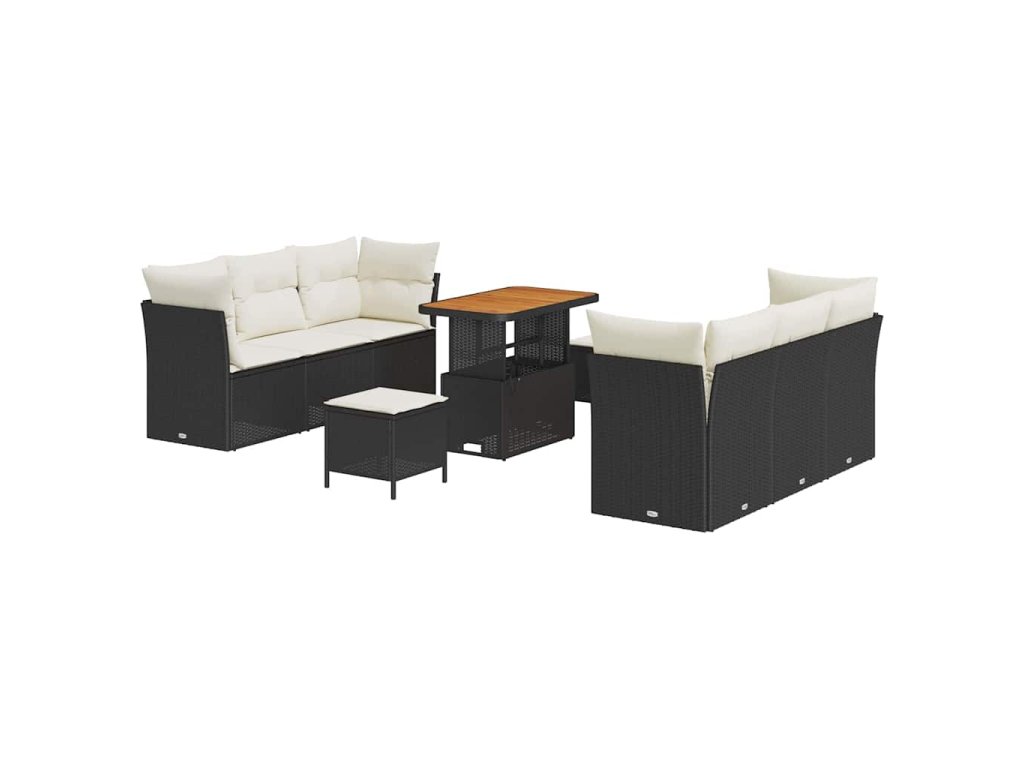 Sada zahradních pohovek s polštářem 9 pcs Černá polyratan 3361440