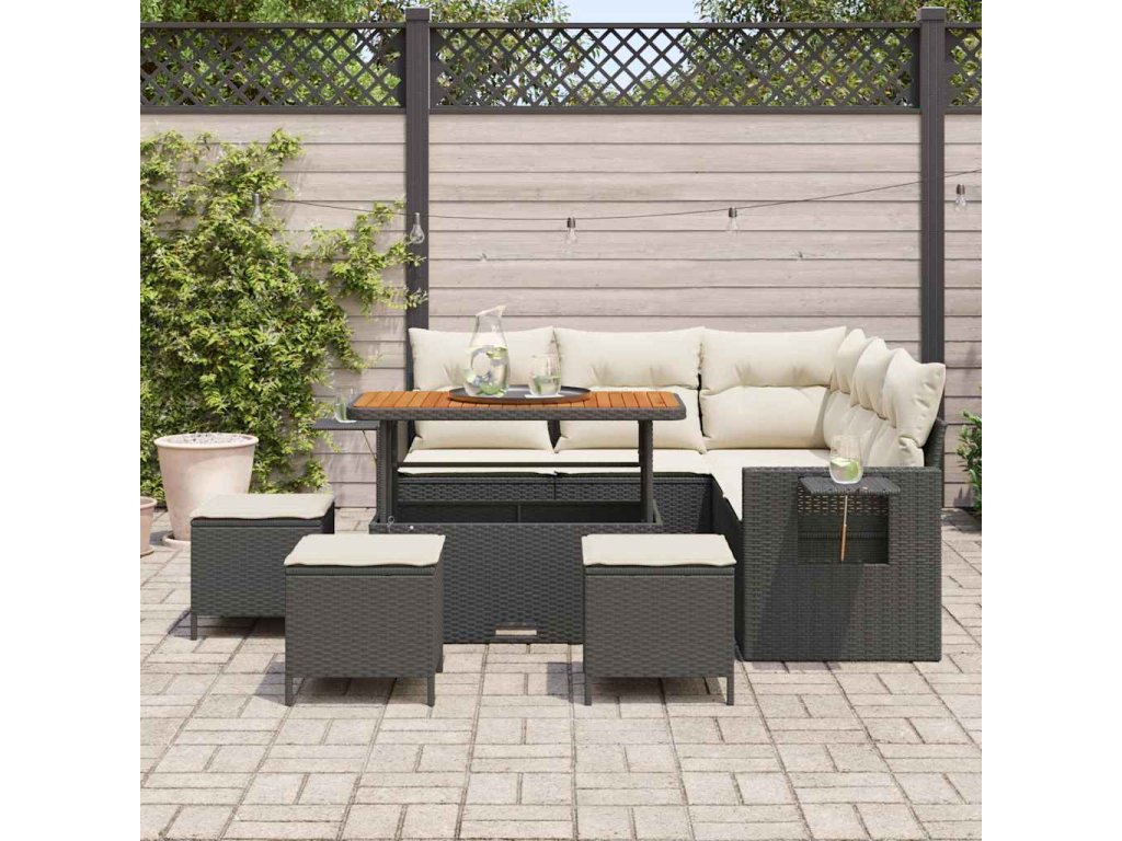 Sada zahradních pohovek s polštářem 9 pcs Černá polyratan 3361750