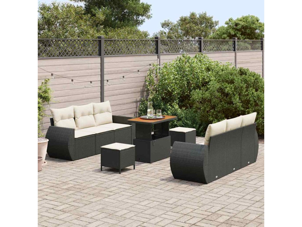 Sada zahradních pohovek s polštářem 9 pcs Černá polyratan 3361830