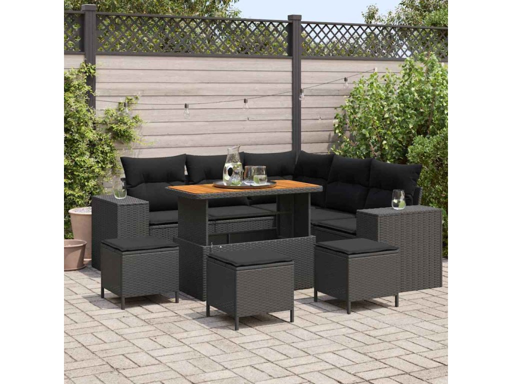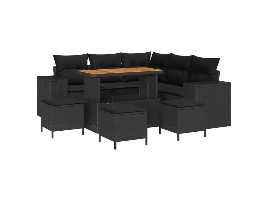 Sada zahradních pohovek s polštářem 9 pcs Černá polyratan 3362009