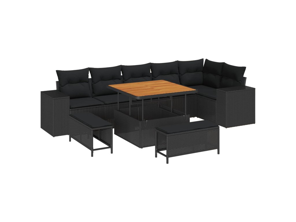 Sada zahradních pohovek s polštářem 9 pcs Černá polyratan 3362014