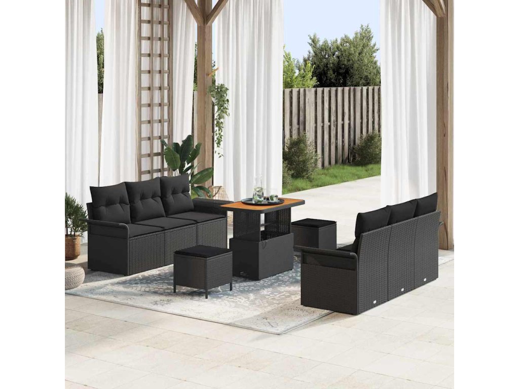 Sada zahradních pohovek s polštářem 9 pcs Černá polyratan 3362089