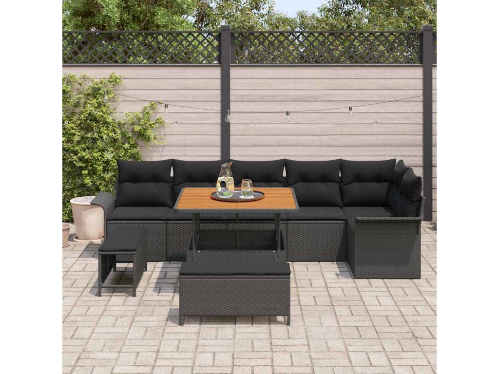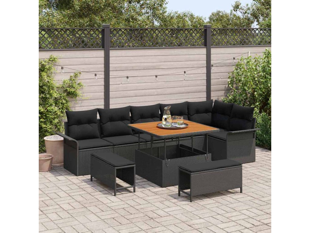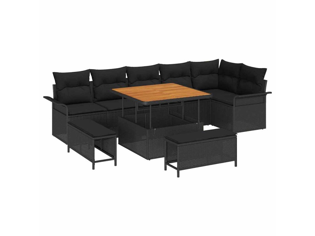 Sada zahradních pohovek s polštářem 9 pcs Černá polyratan 3362144