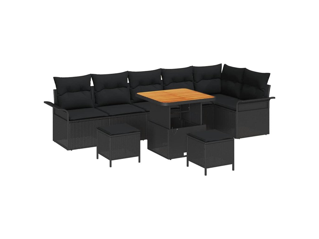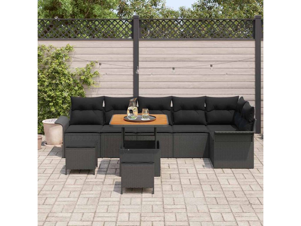 Sada zahradních pohovek s polštářem 9 pcs Černá polyratan 3362149