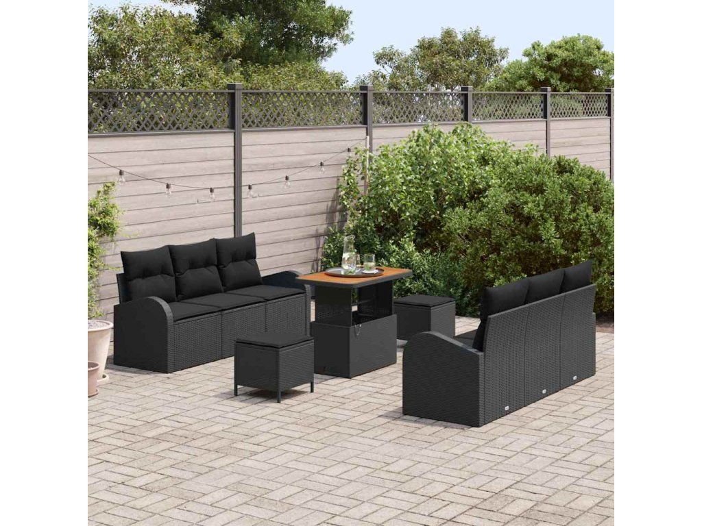 Sada zahradních pohovek s polštářem 9 pcs Černá polyratan 3362349