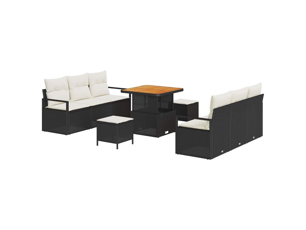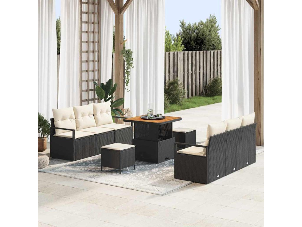 Sada zahradních pohovek s polštářem 9 pcs Černá polyratan 3362475