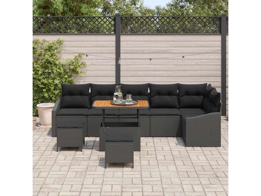 Sada zahradních pohovek s polštářem 9 pcs Černá polyratan 3362674