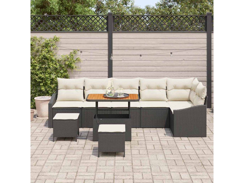 Sada zahradních pohovek s polštářem 9 pcs Černá polyratan 3362675