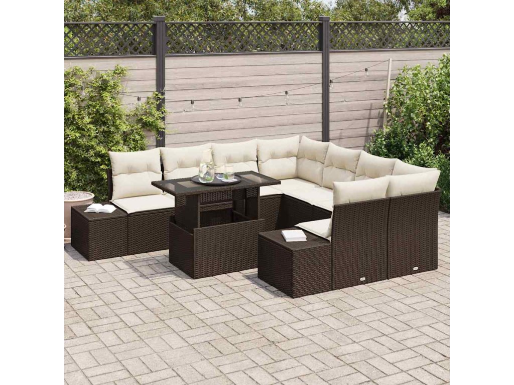 Sada zahradních pohovek s polštářem 9 pcs Hnědá a krémová 3357891