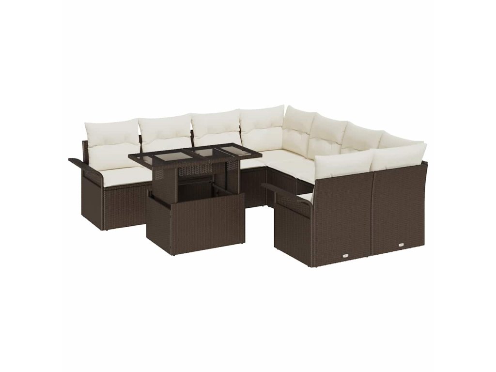 Sada zahradních pohovek s polštářem 9 pcs Hnědá Poly ratan 3348254