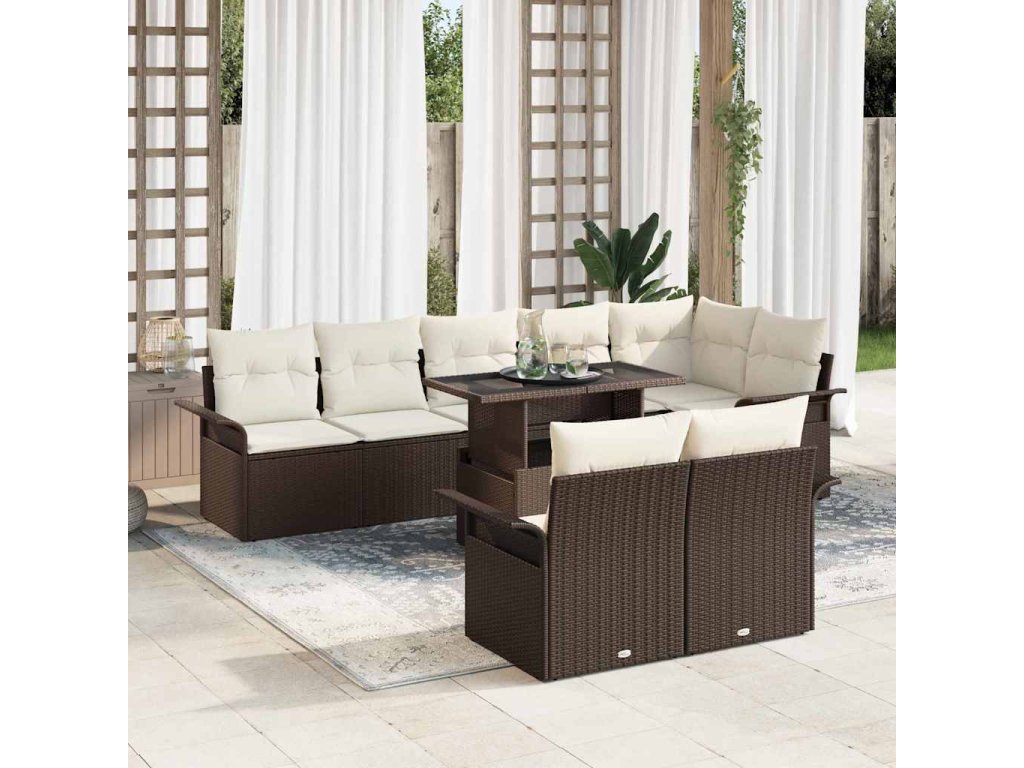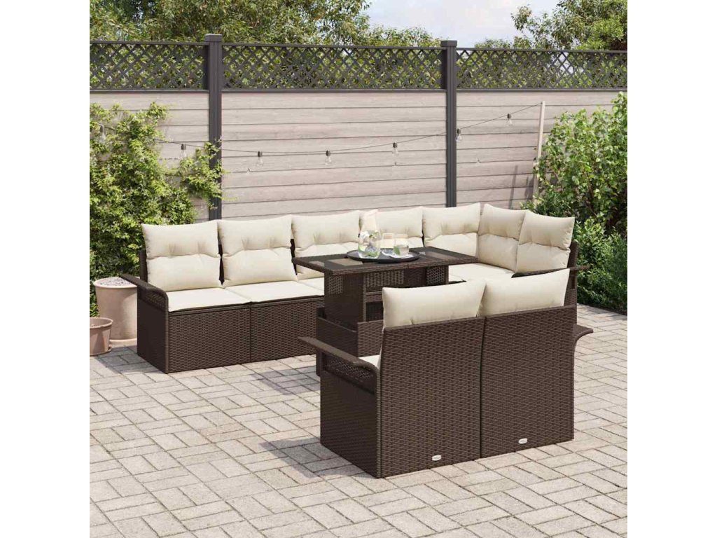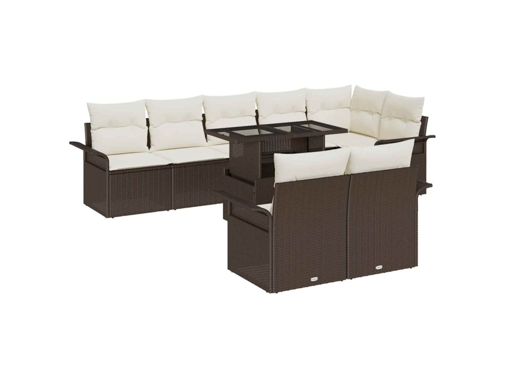 Sada zahradních pohovek s polštářem 9 pcs Hnědá Poly ratan 3348304
