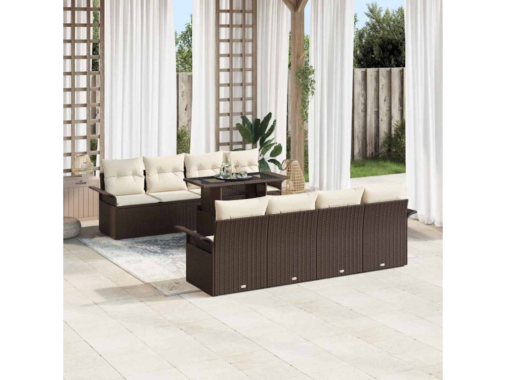 Sada zahradních pohovek s polštářem 9 pcs Hnědá Poly ratan 3356981