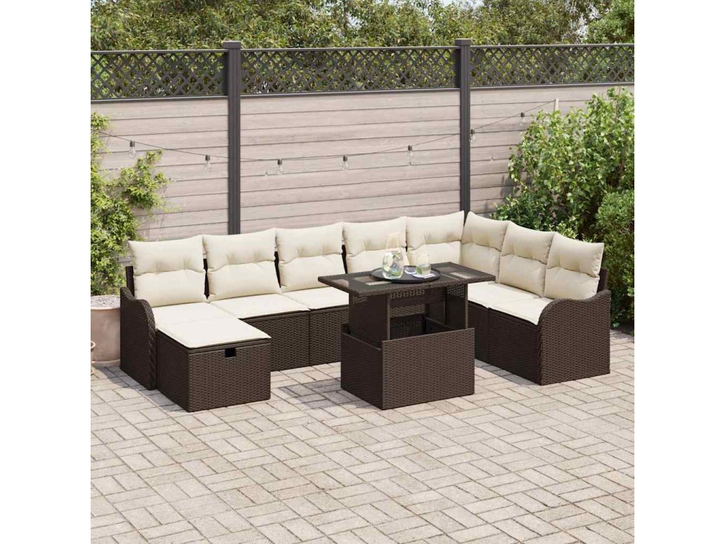 Sada zahradních pohovek s polštářem 9 pcs Hnědá Poly ratan 3359735