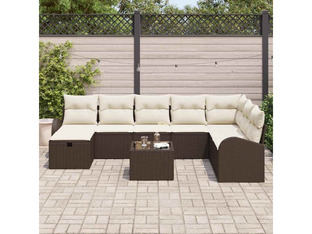 Sada zahradních pohovek s polštářem 9 pcs Hnědá Poly ratan 3360469