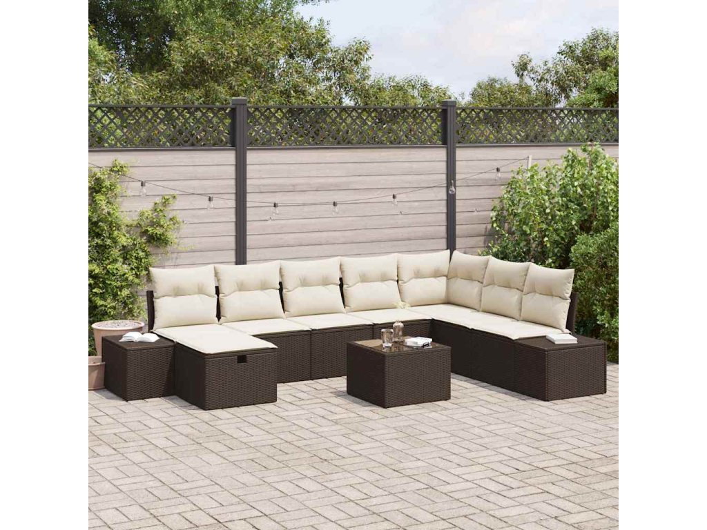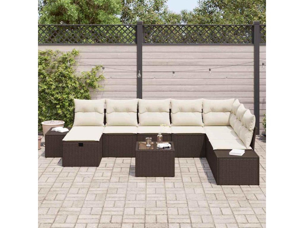 Sada zahradních pohovek s polštářem 9 pcs Hnědá Poly ratan 3360769