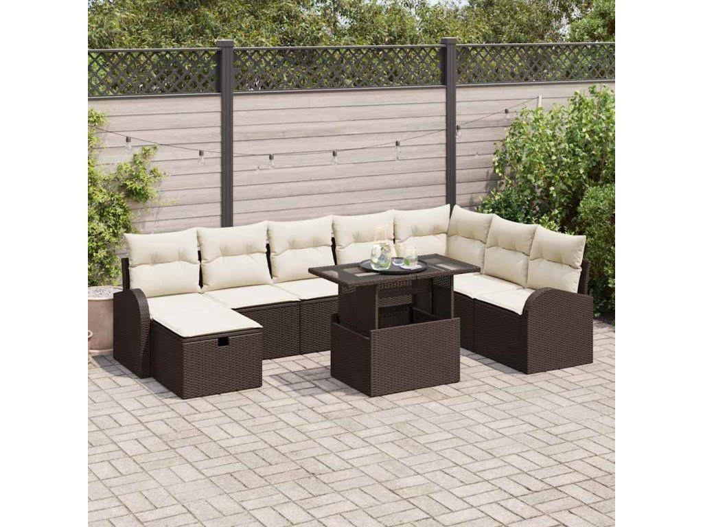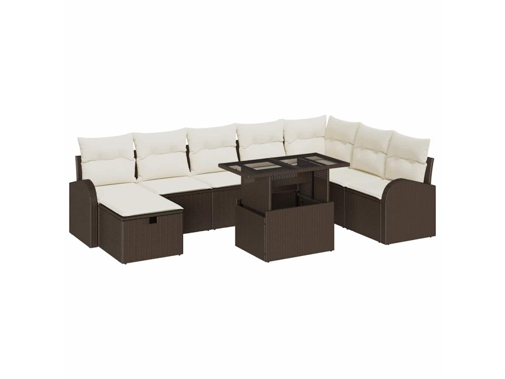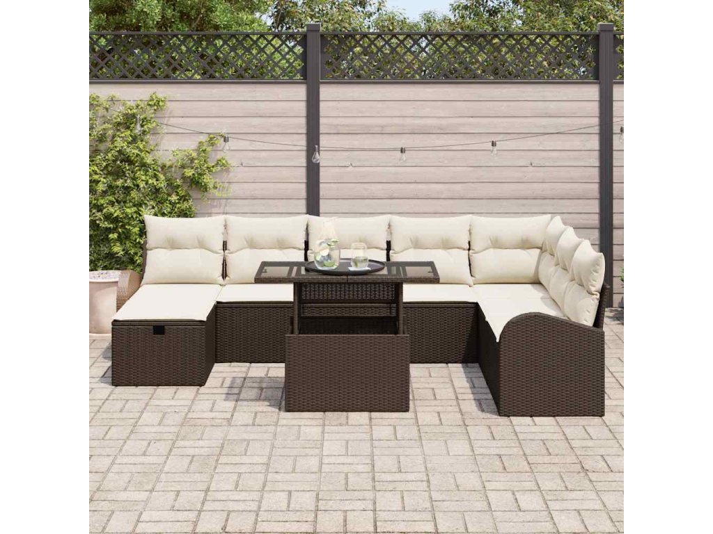 Sada zahradních pohovek s polštářem 9 pcs Hnědá Poly ratan 3361107