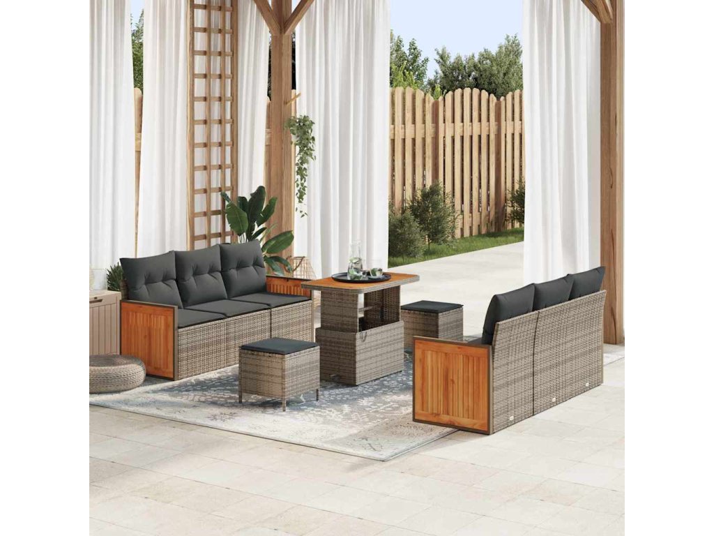 Sada zahradních pohovek s polštářem 9 pcs Šedá 3363263