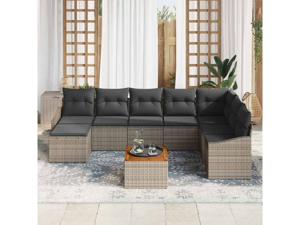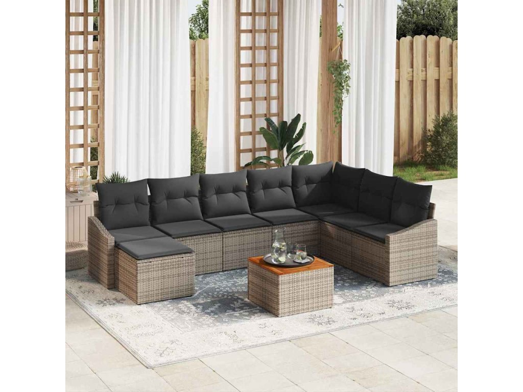 Sada zahradních pohovek s polštářem 9 pcs Šedá Poly ratan 3347867