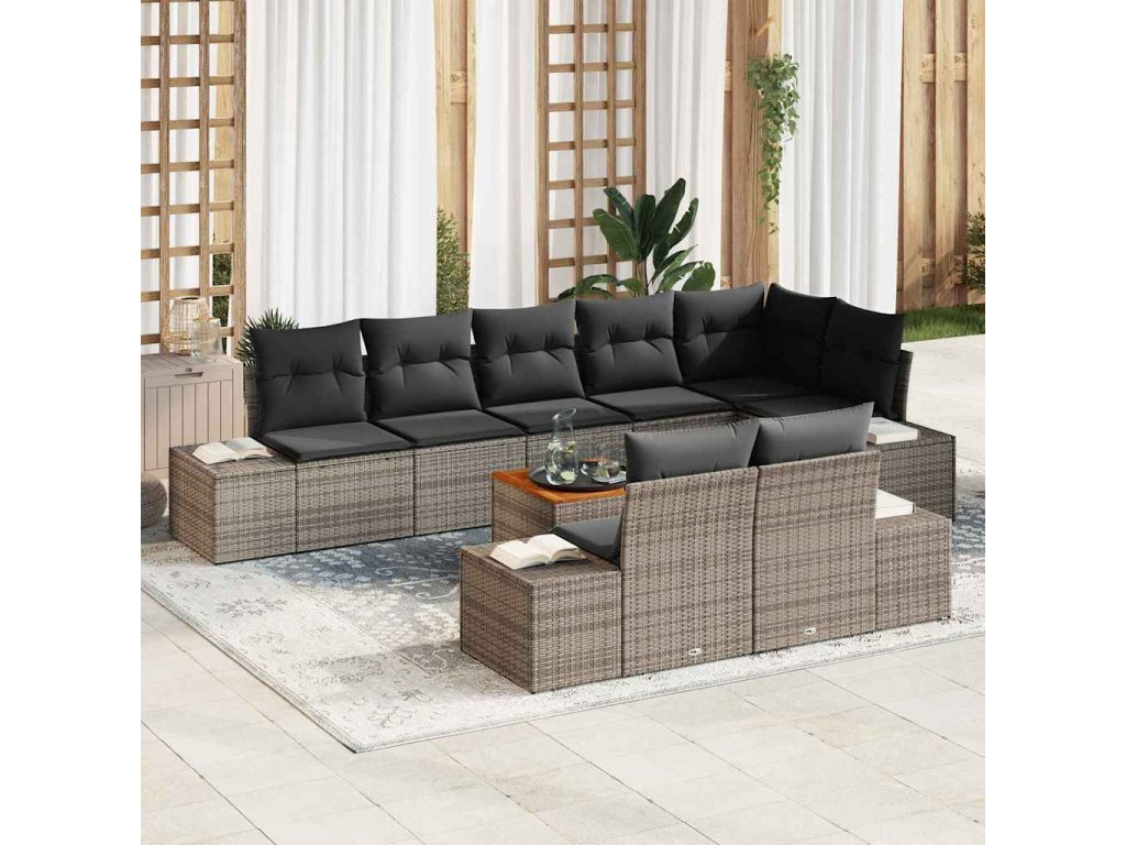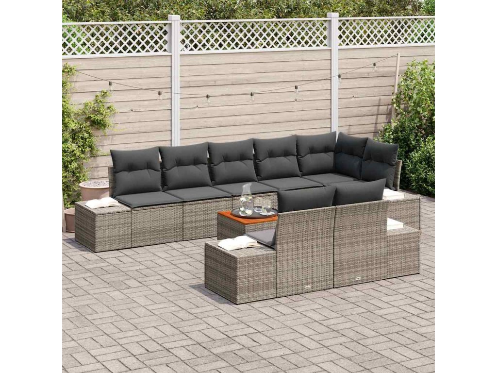 Sada zahradních pohovek s polštářem 9 pcs Šedá Poly ratan 3347972