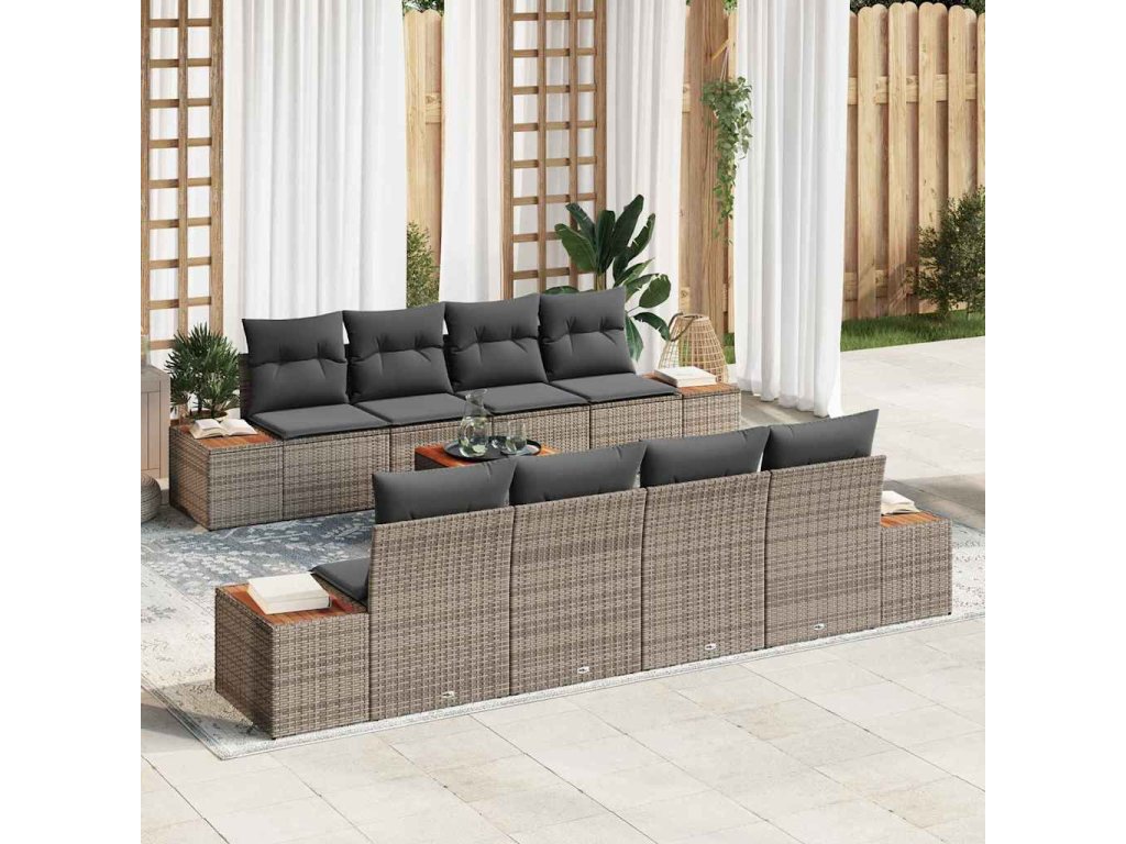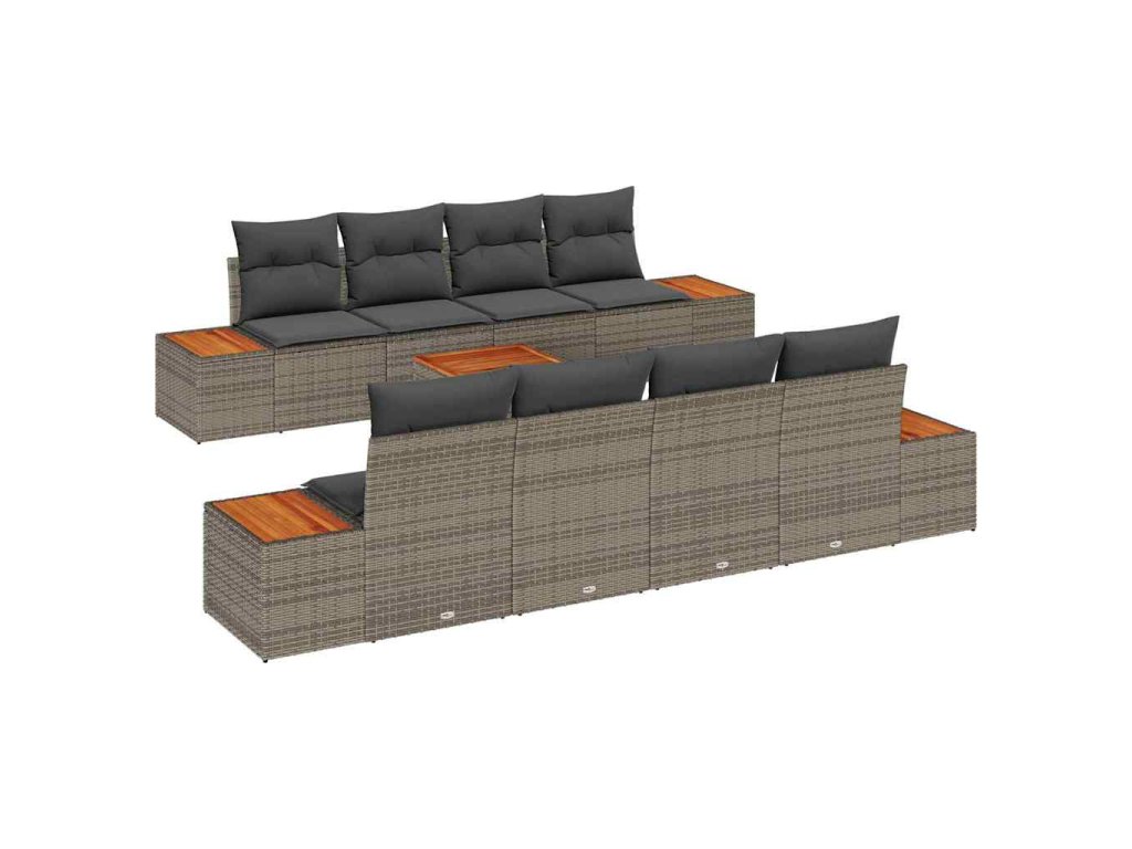Sada zahradních pohovek s polštářem 9 pcs Šedá Poly ratan 3348050