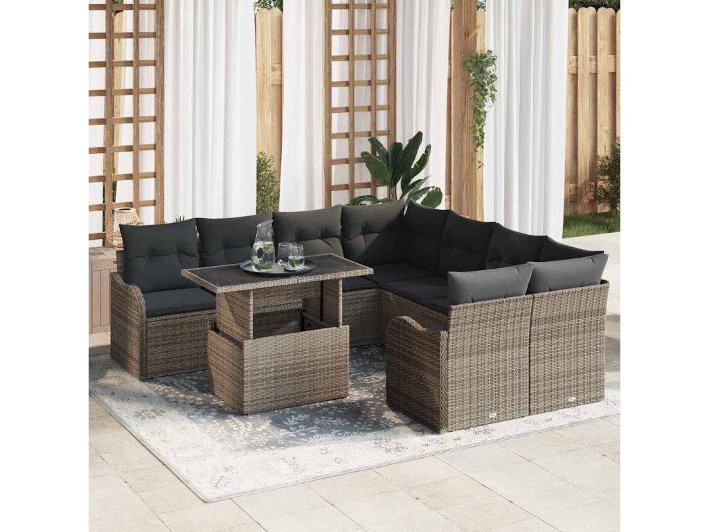 Sada zahradních pohovek s polštářem 9 pcs Šedá Poly ratan 3348435