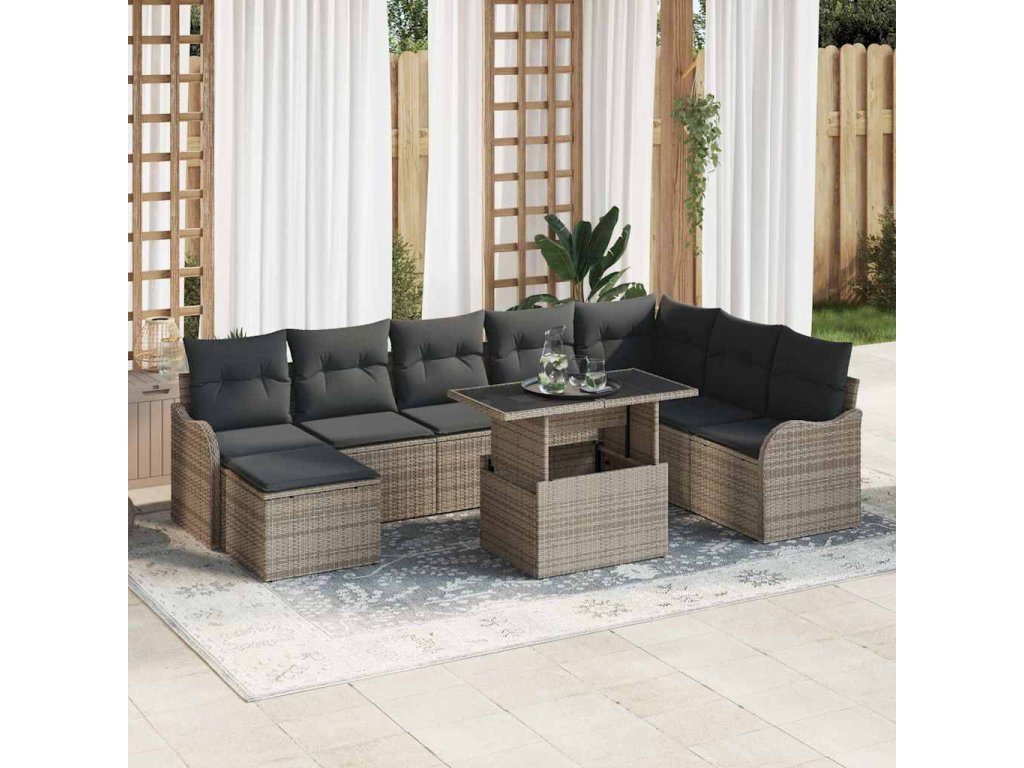 Sada zahradních pohovek s polštářem 9 pcs Šedá Poly ratan 3348515
