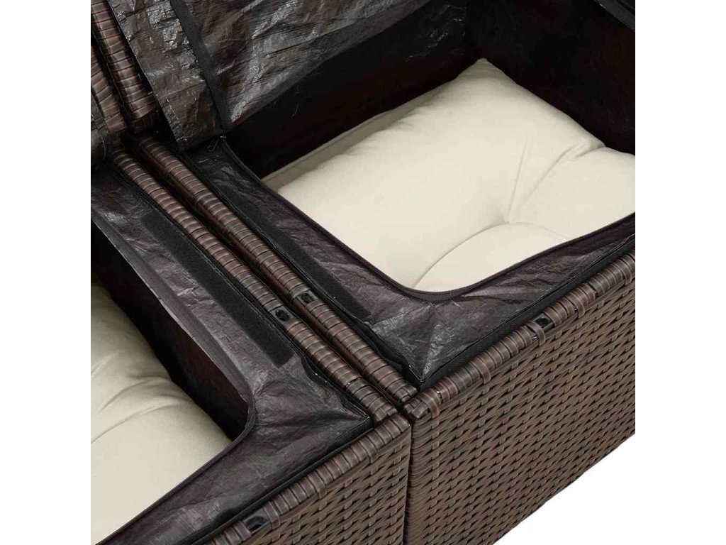 - Kvalitní materiály: Konstrukce z poly ratanu, tahle sada zahradního gauče má rustikální, ale přesto elegantní vzhled. Materiál z poly ratanu je odolný a spolehlivý, vydrží každodenní používání venku. Jeho zajímavá, tkaná textura přidává styl a pohodlí při sezení.