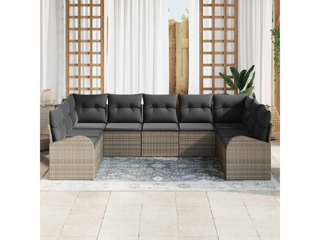 Sada zahradních pohovek s polštářem 9 pcs Šedá Poly ratan 3354868