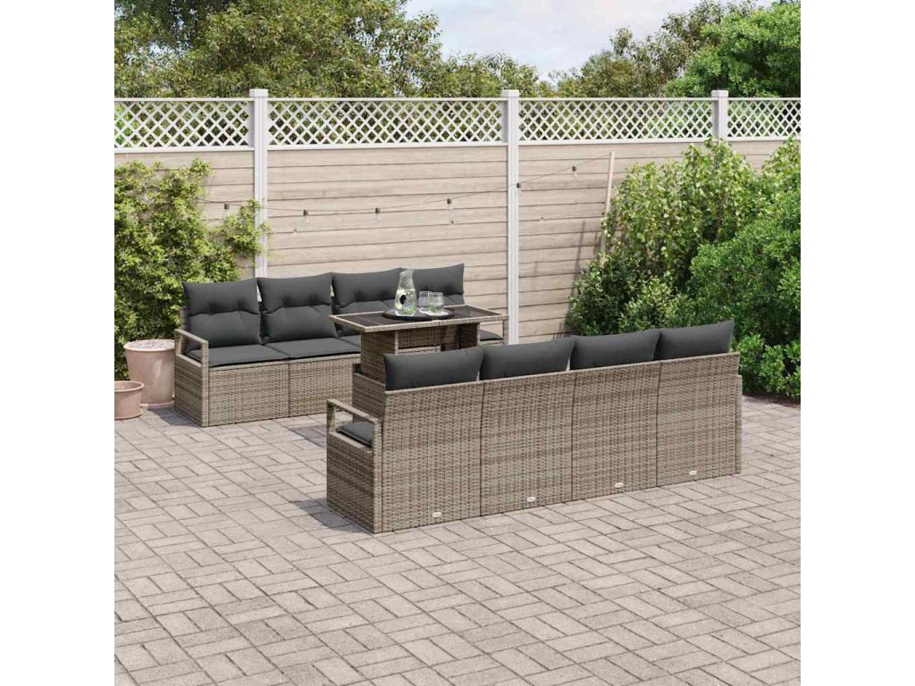 Sada zahradních pohovek s polštářem 9 pcs Šedá Poly ratan 3357522
