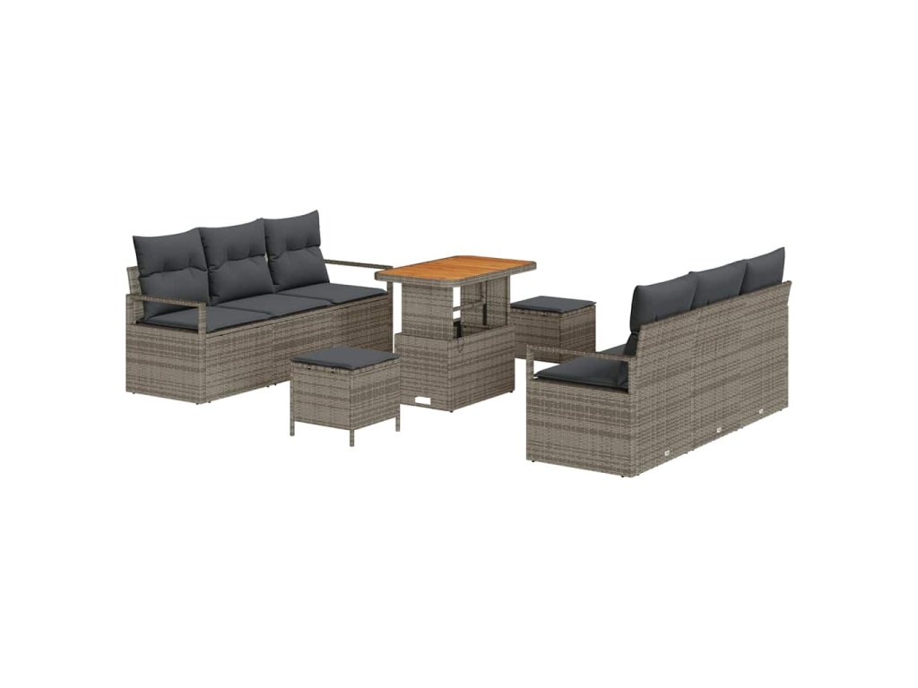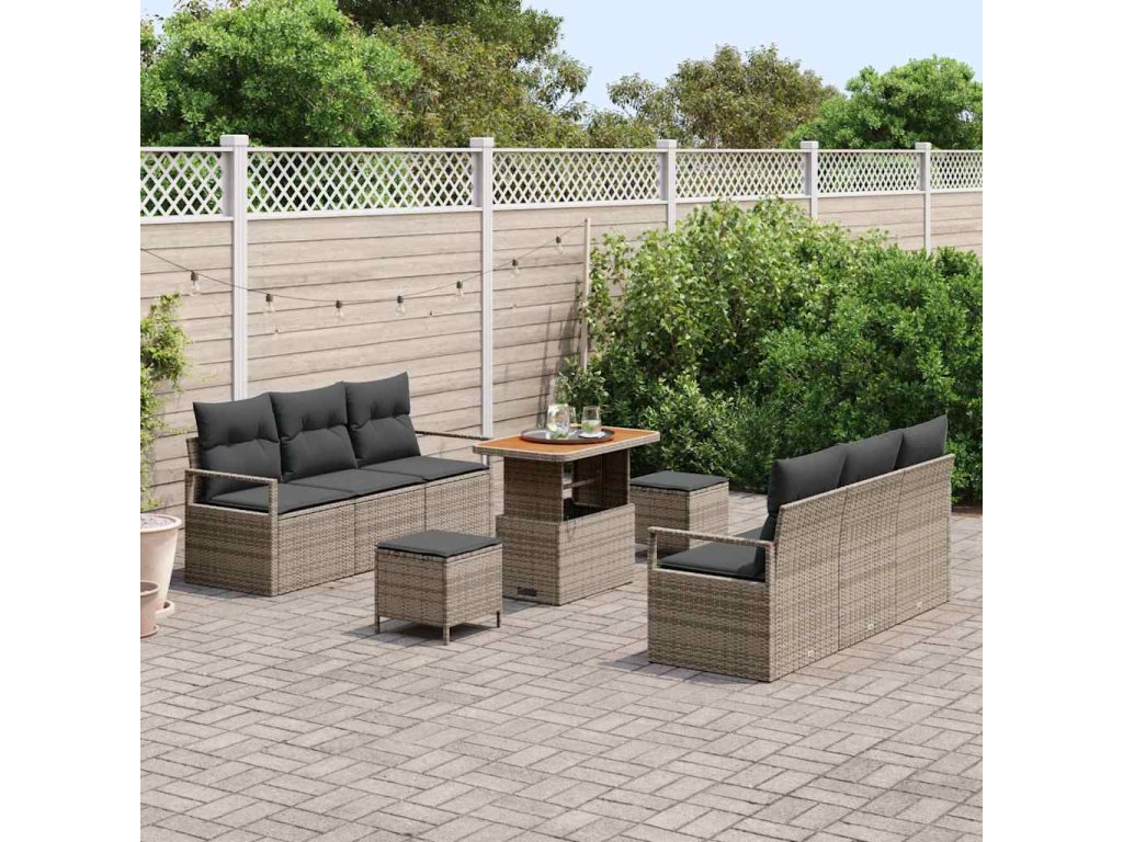 Sada zahradních pohovek s polštářem 9 pcs Šedá Poly ratan 3362483
