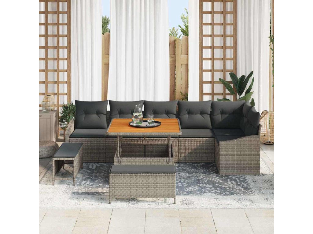 - Funkce / design Se stolkem z masivního akáciového dřeva, který se dá výškově nastavit, tahle souprava se bez námahy mění z kávového stolu na jídelní stůl. Díky lehké, modulární konstrukci je přesouvání jejího uspořádání jednoduché a flexibilní.