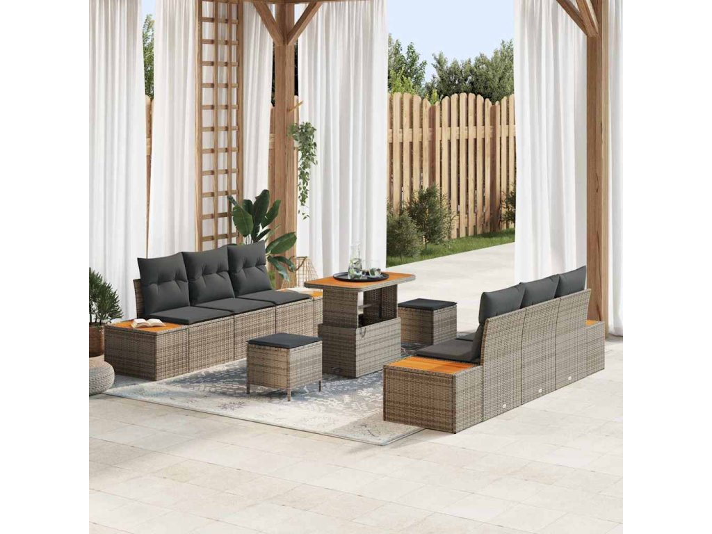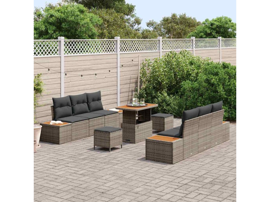 Sada zahradních pohovek s polštářem 9 pcs Šedá Poly ratan 3364823