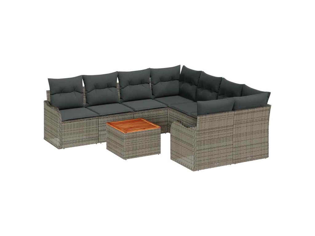 Sada zahradních pohovek s polštářem 9 pcs Šedá polyratan 3347433