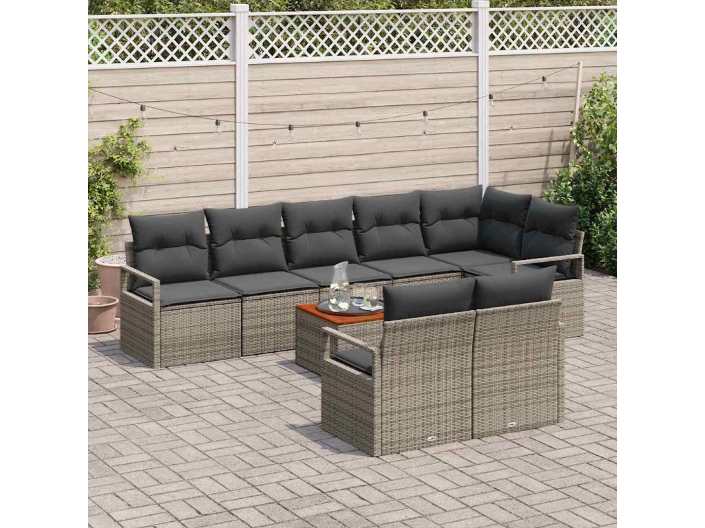 Sada zahradních pohovek s polštářem 9 pcs Šedá polyratan 3347720