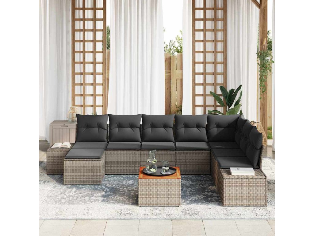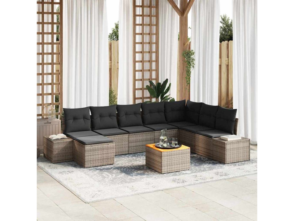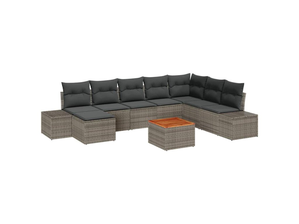Sada zahradních pohovek s polštářem 9 pcs Šedá polyratan 3347993