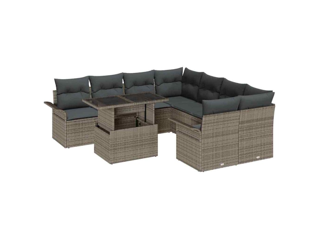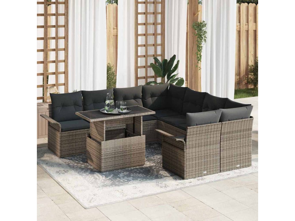 Sada zahradních pohovek s polštářem 9 pcs Šedá polyratan 3348255