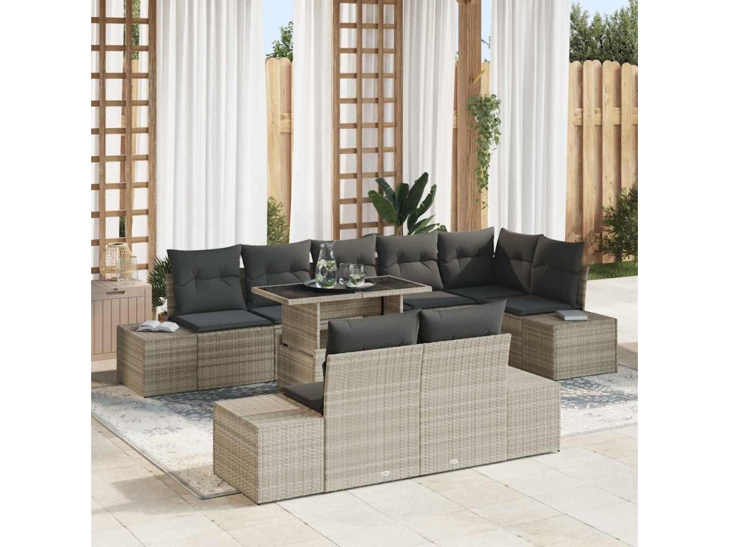 Sada zahradních pohovek s polštářem 9 pcs Světle šedá polyratan 3349208