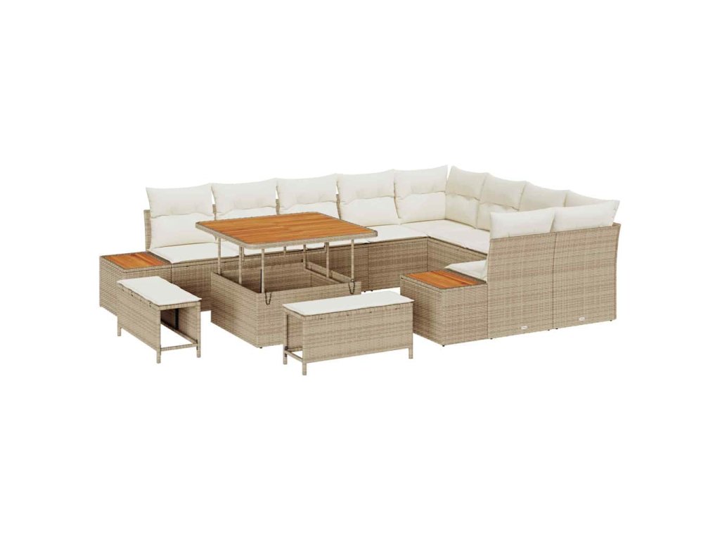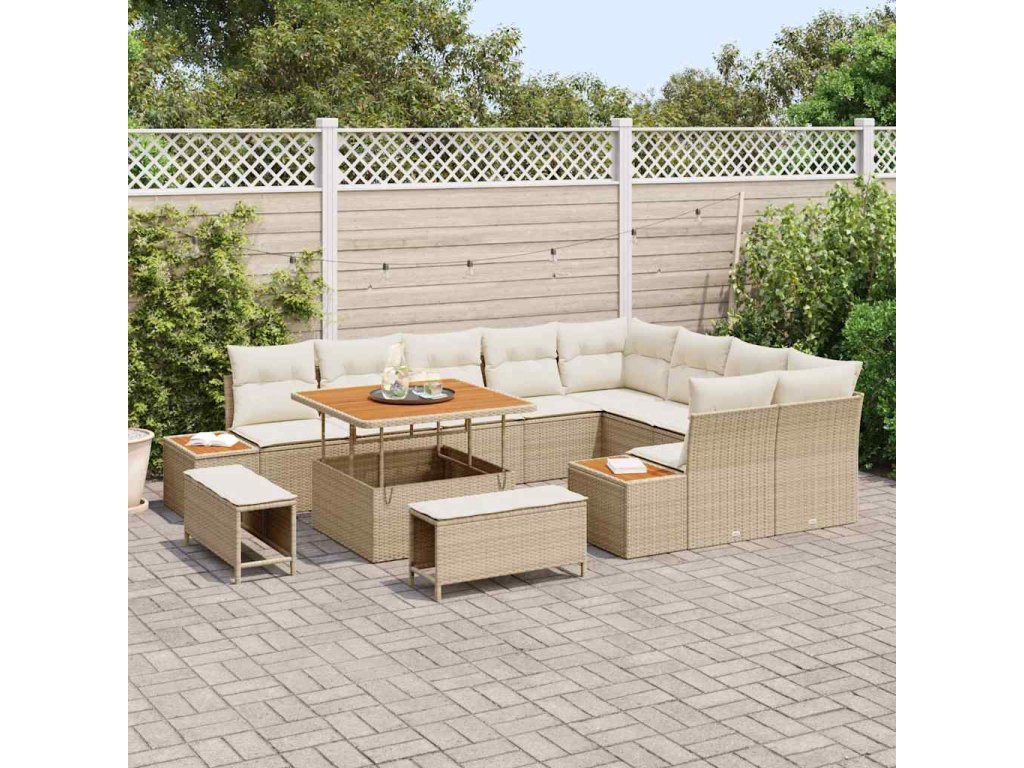 Sada zahradních pohovek s polštářem Béžová Poly ratan 3364896