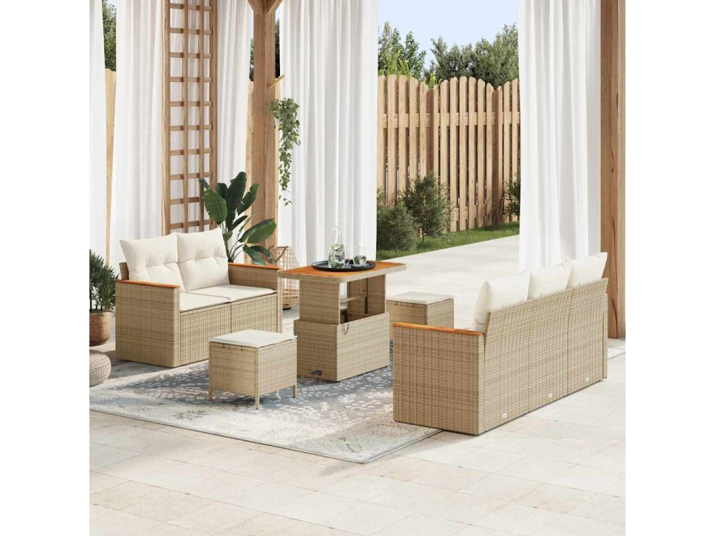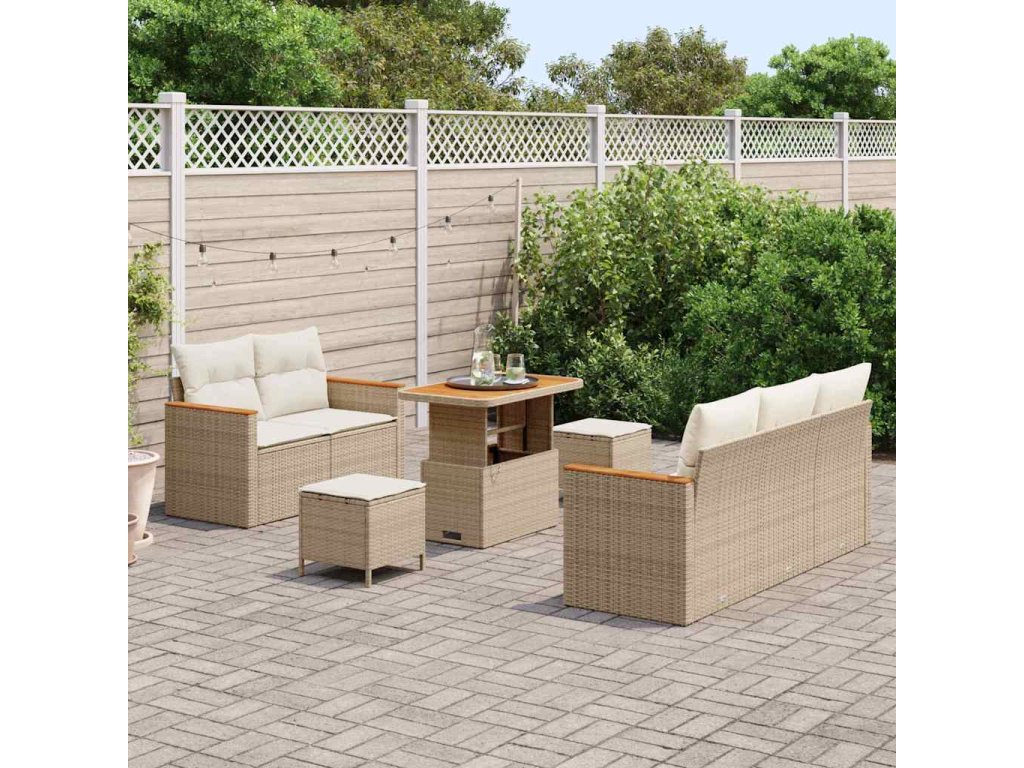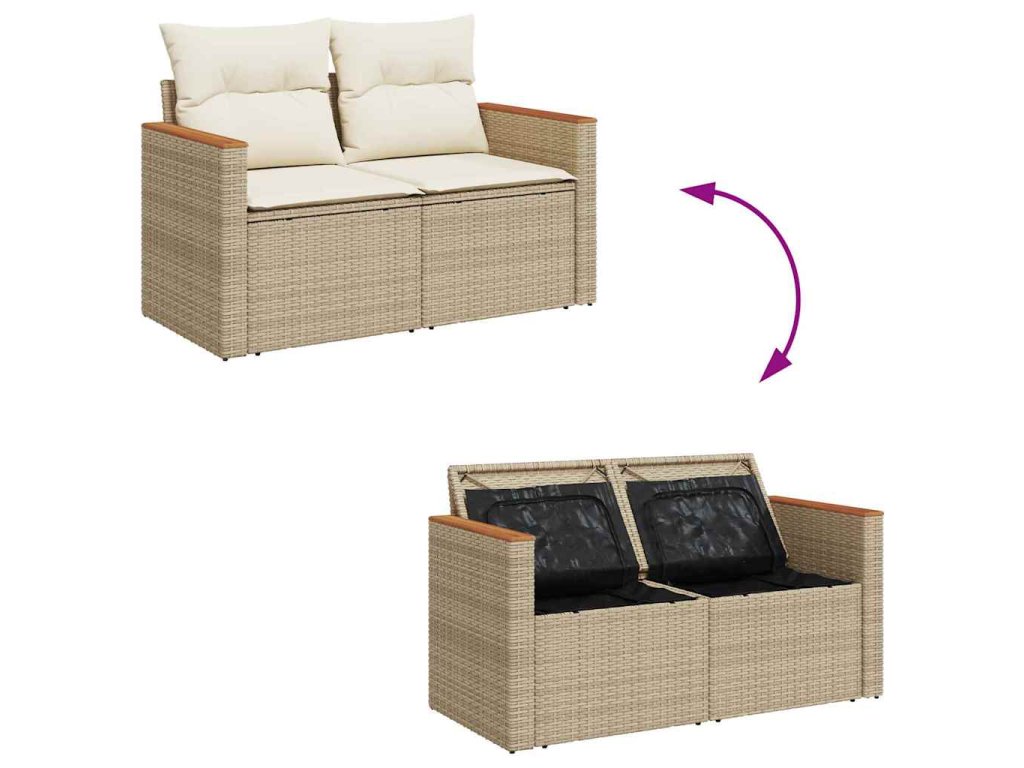 Sada zahradních pohovek s polštářem Béžová Poly ratan 3364941