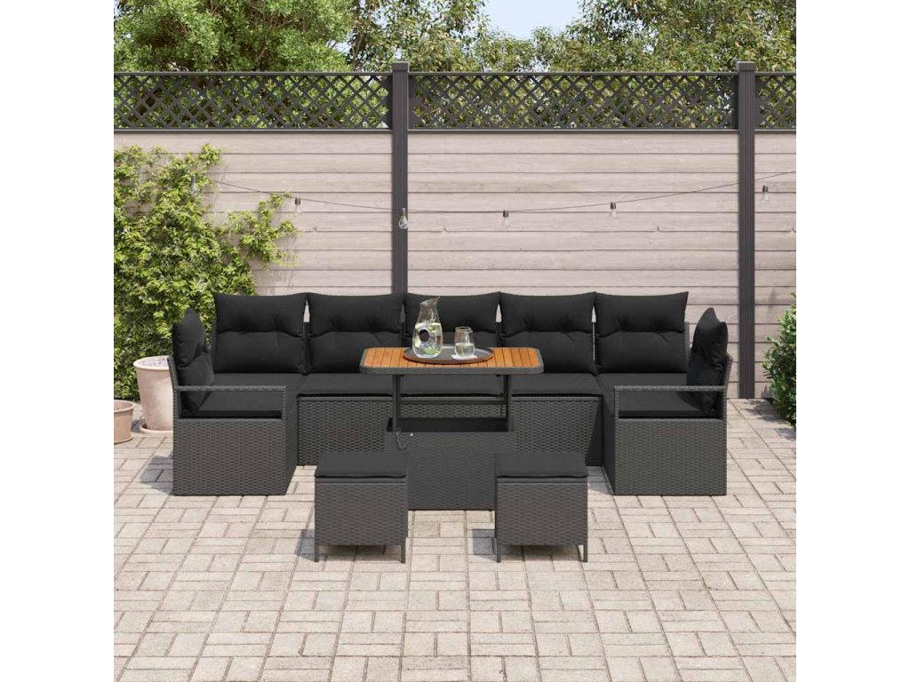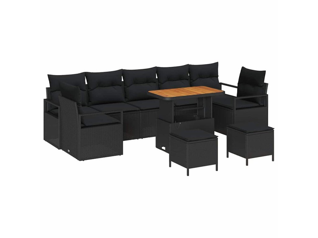 Sada zahradních pohovek s polštářem s úložištěm 10 pcs Černá 3364459