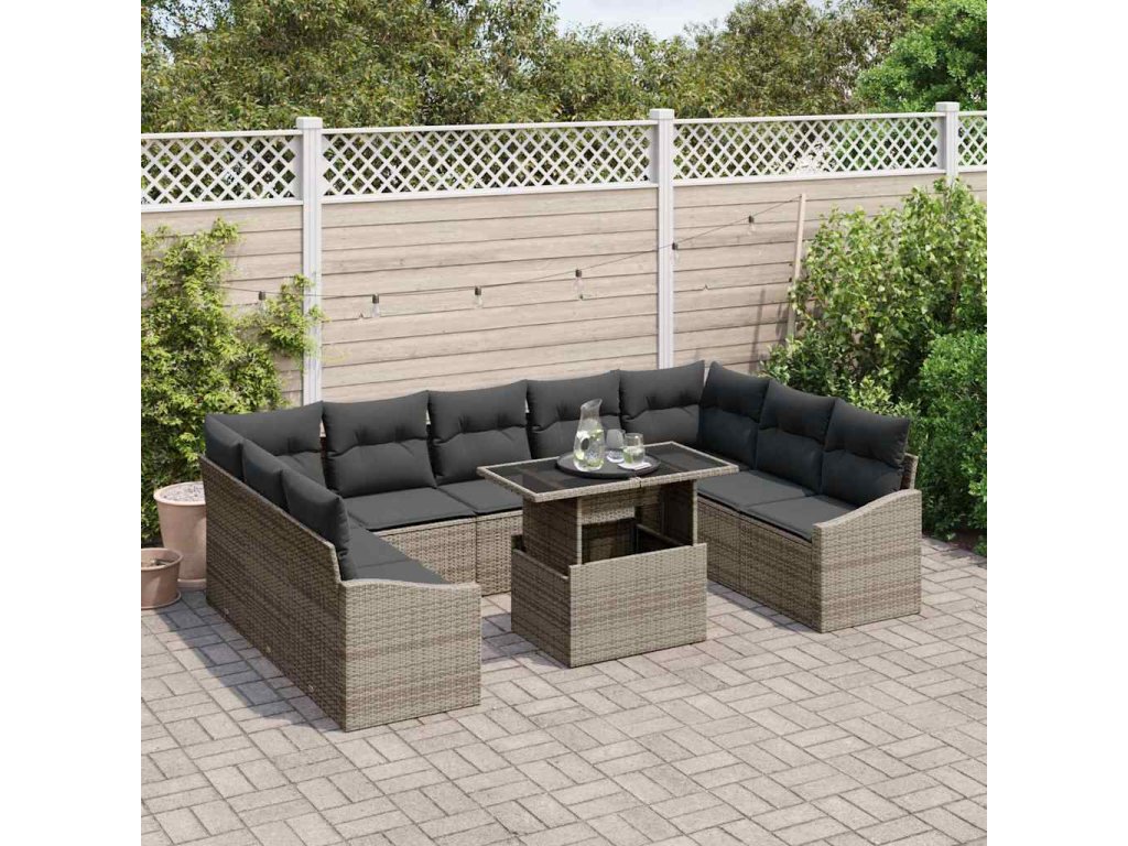 Sada zahradních pohovek s polštářem s úložištěm 10 pcs Šedá 3357802