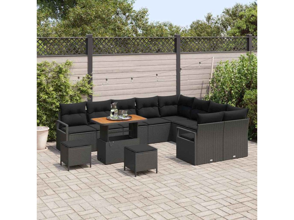 Sada zahradních pohovek s polštářem s úložištěm 12 pcs Černá 3364514