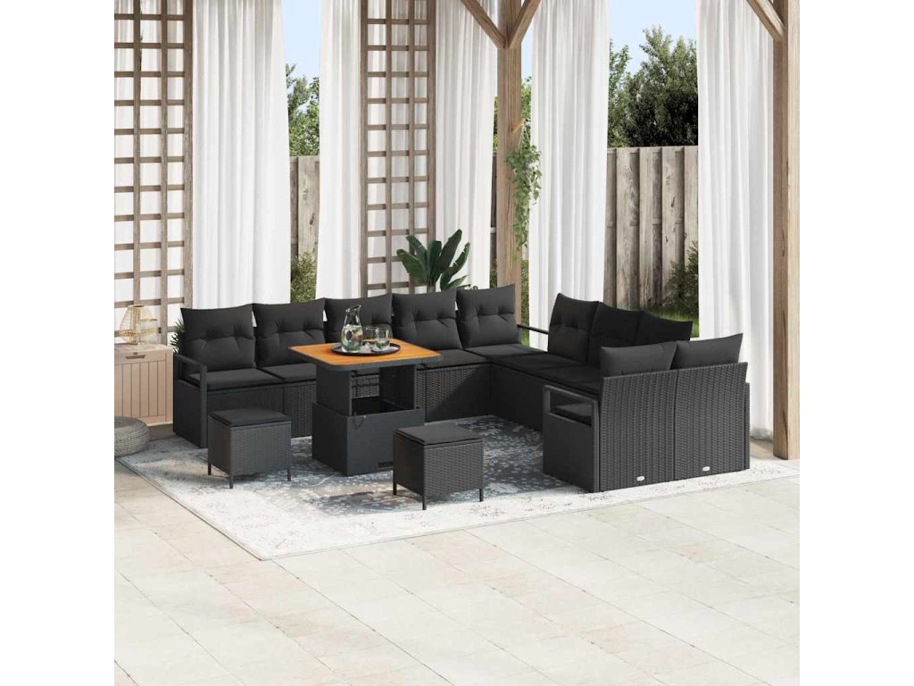 Sada zahradních pohovek s polštářem s úložištěm 13 pcs Černá 3364529