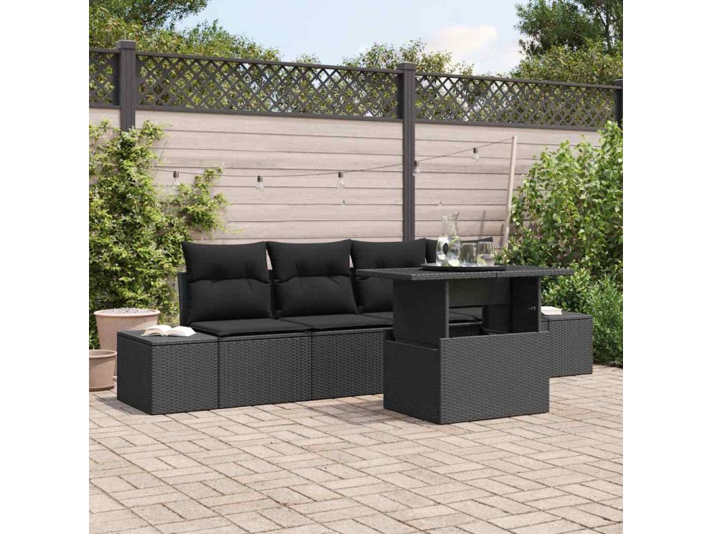 Sada zahradních pohovek s polštářem s úložištěm 5 pcs Černá 3357826