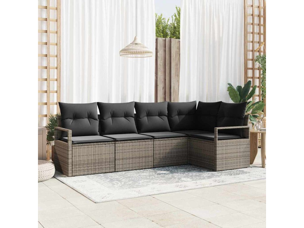 Sada zahradních pohovek s polštářem s úložištěm 5 pcs Šedá 3355048