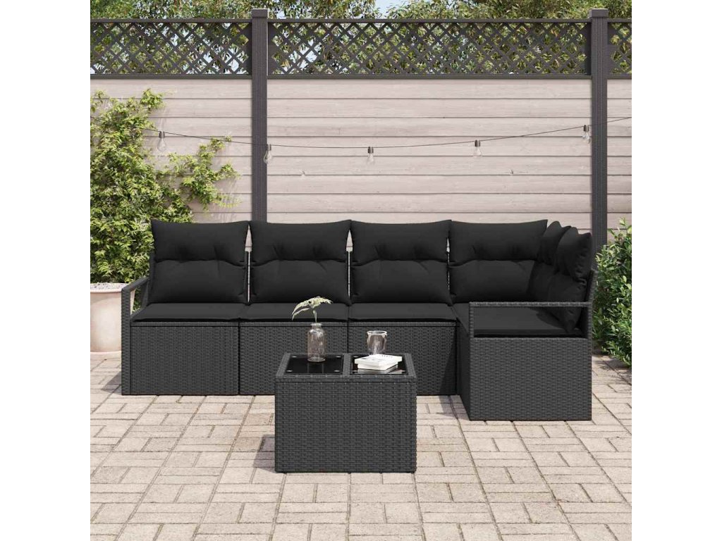 Sada zahradních pohovek s polštářem s úložištěm 6 pcs Černá 3355062