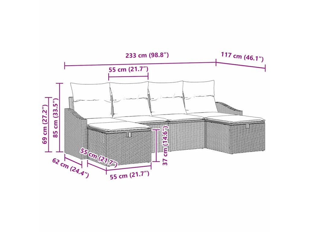 Sada zahradních pohovek s polštářem s úložištěm 6 pcs polyratan 3359317