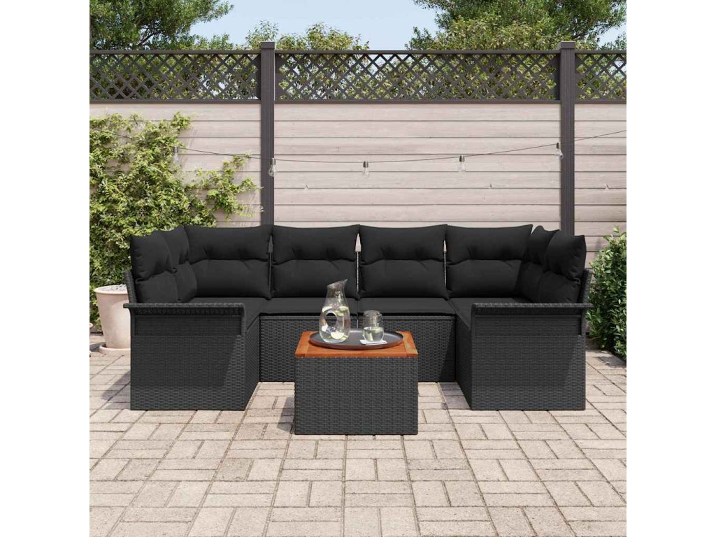 Sada zahradních pohovek s polštářem s úložištěm 7 pcs Černá 3355951
